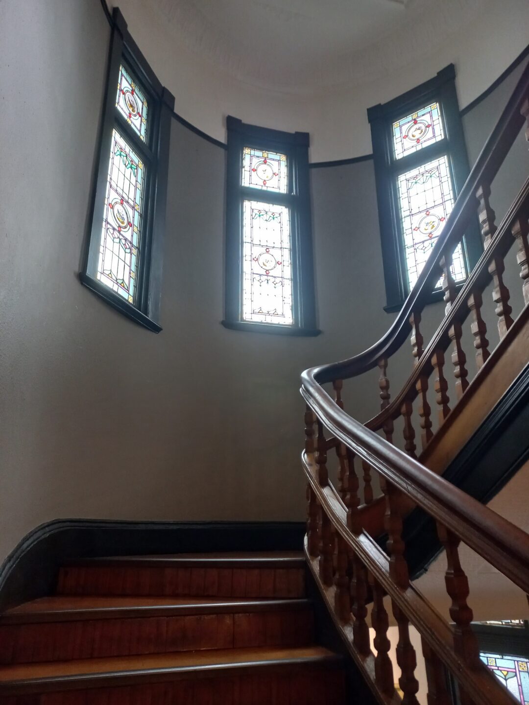 The finial on the standing seam lead roof to the stairwell is intact as is the roof itself – a rare survivor of this roofing technique.