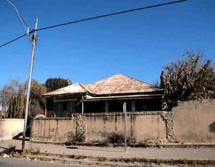 The Nannabhai House in Sophiatown, also known as the “Ghost House”, is a distinctive historical structure that embodies both architectural and historical significance. The house features a light beige or tan-coloured corrugated metal roof, gently sloping and visibly weathered, resting atop a reddish-brown brick structure. The bricks, rich in tone, highlight the craftsmanship of early 20th-century architecture.