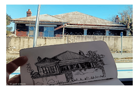 Overhead, power lines stretch horizontally in the sky, hinting at the urban development that has grown around the house over the decades. The overall setting of the house, showcase its layered history. Its preserved yet weathered appearance makes it a compelling symbol of survival amidst the transformation of the surrounding neighbourhood.