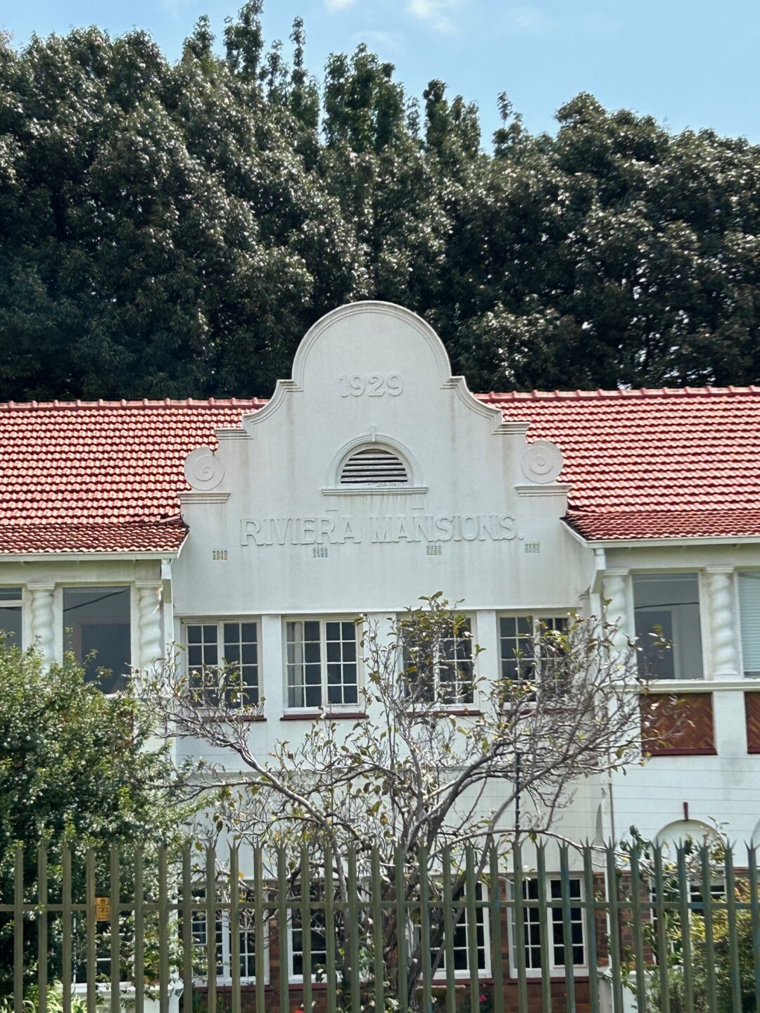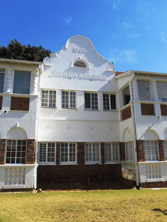 Riviera Mansions is one of earliest suburban apartment blocks in Johannesburg together with Whitehall Court (1923 – 24) by JA Moffat in neighbouring Killarney, Brenthurst Place (previously Clive Mansions) Clarendon Circle by S. P. H. Mitchelson (1928), and Murray Gordon Mansions (1918 – 1919) by J Waterson located in Westcliff, where the Westcliff hotel is now situated (Chipkin 1993:70).