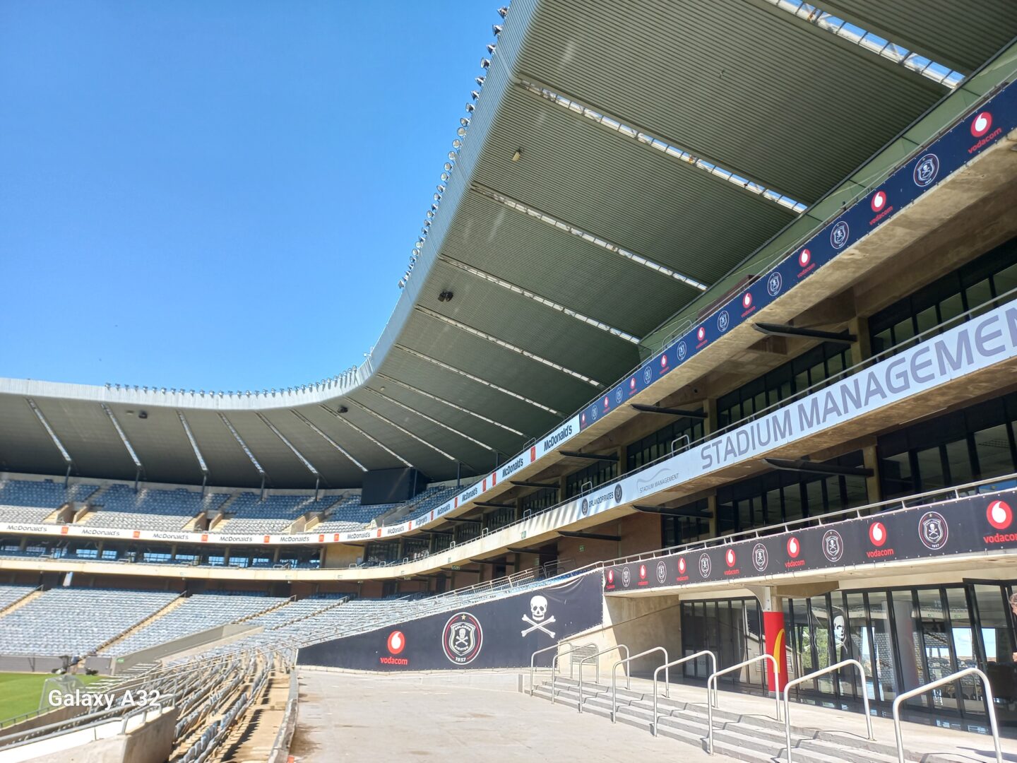 The new stadium seats 40 000 people, partially enclosed by an impressive encircling roof that covers more than 70 percent of spectators. Modern amenities include private hospitality suites, conference facilities, meeting rooms, a gymnasium, a fan shop, office space, video and security facilities including CCTV cameras.