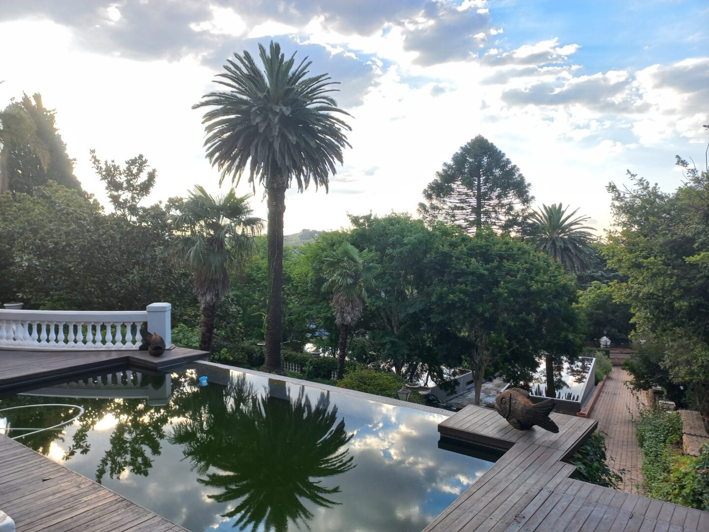The house was built by a Portuguese from Madeira, J M Fernandez in 1928-30. He dealt with the importation of Mozambican men to work on the mines and it is suggested that mineworkers were probably employed over weekends to build the complex garden terraces, the pergolas and the belvedere. The garden reveals the heritage of Madeira where water and soil are treasured and where the kitchen garden and the keeping of animals for the pot are an integral part of its character.