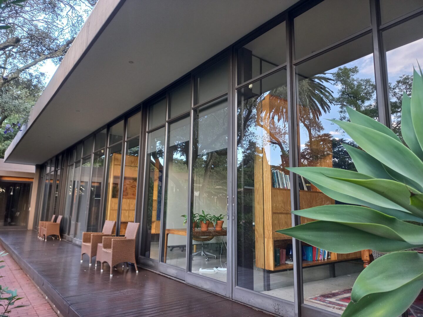 This storeroom has been renovated and now forms a continuous room with five arches and wood and glass doors, and a stoep running the length of it, overlooking the pool. It is now used as an office.