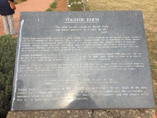 Within the broader site corresponding to the historic Tolstoy Farm, a commemorative area has been established close to the southern ridge.  A landscaped Peace Garden includes flowers, plants, trees and a vegetable garden. A series of heritage plaques are displayed, as well as large busts of Mahatma Gandhi and Nelson Mandela. A plinth structure stands near the centre, with red stairs leading up to what used to be the entrance of a large farmhouse that no longer exists.  Close to the plinth is a newly-established building which serves as a fledgling museum and library.