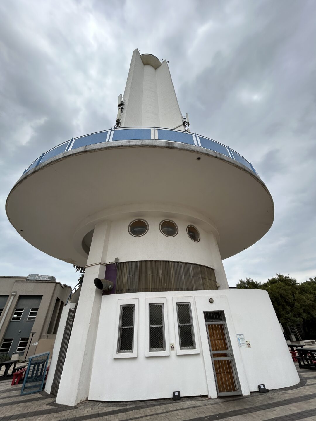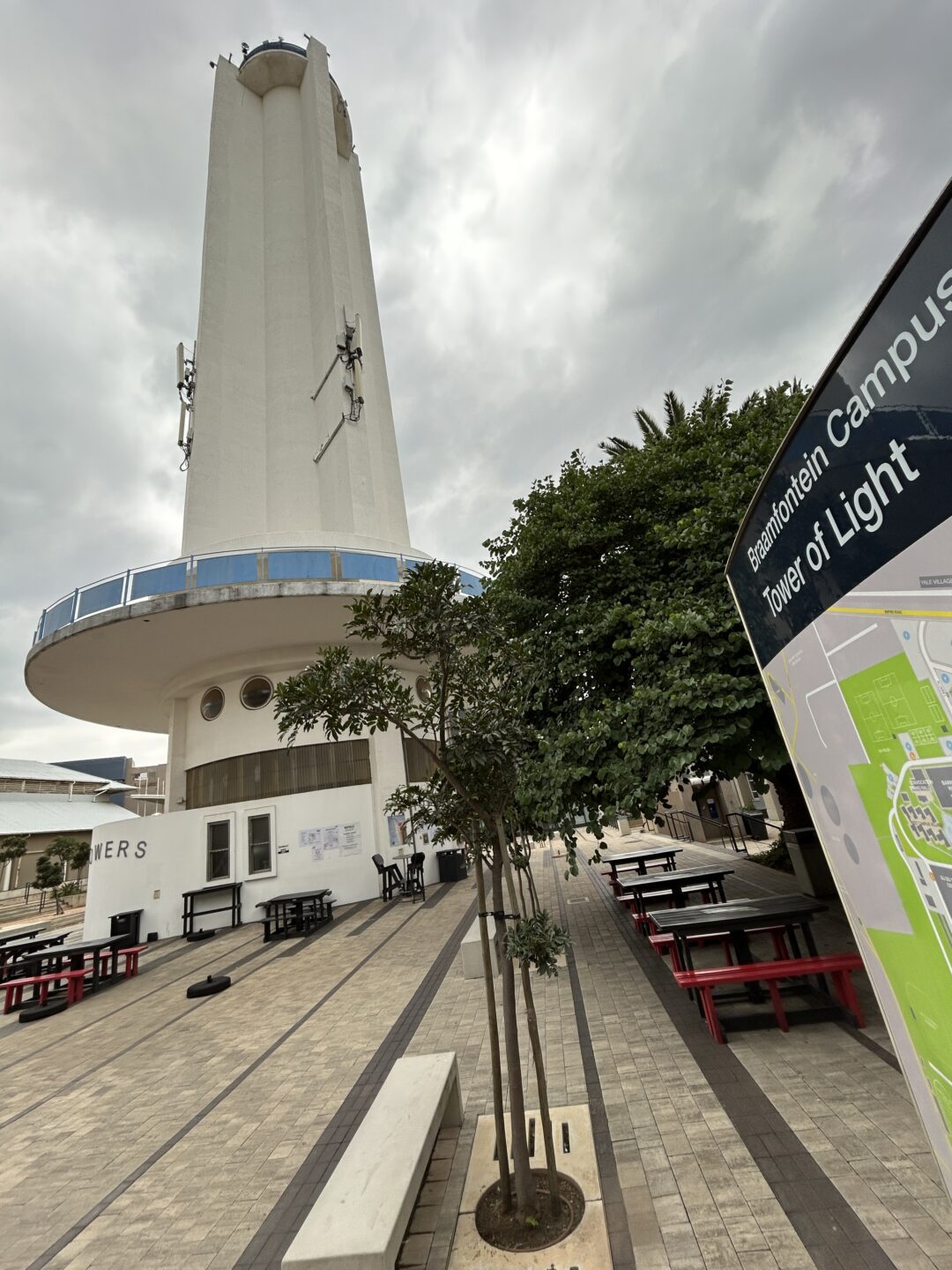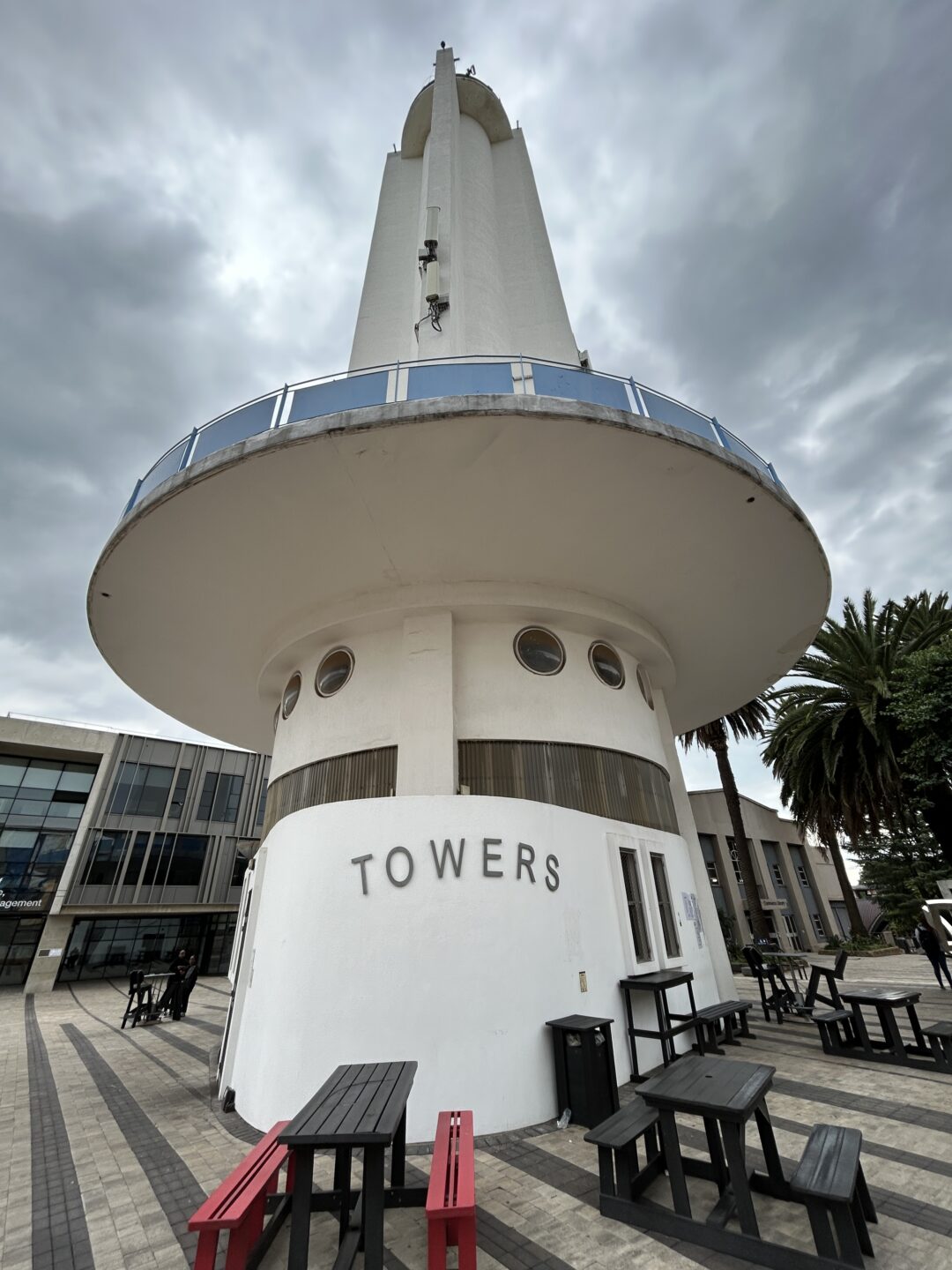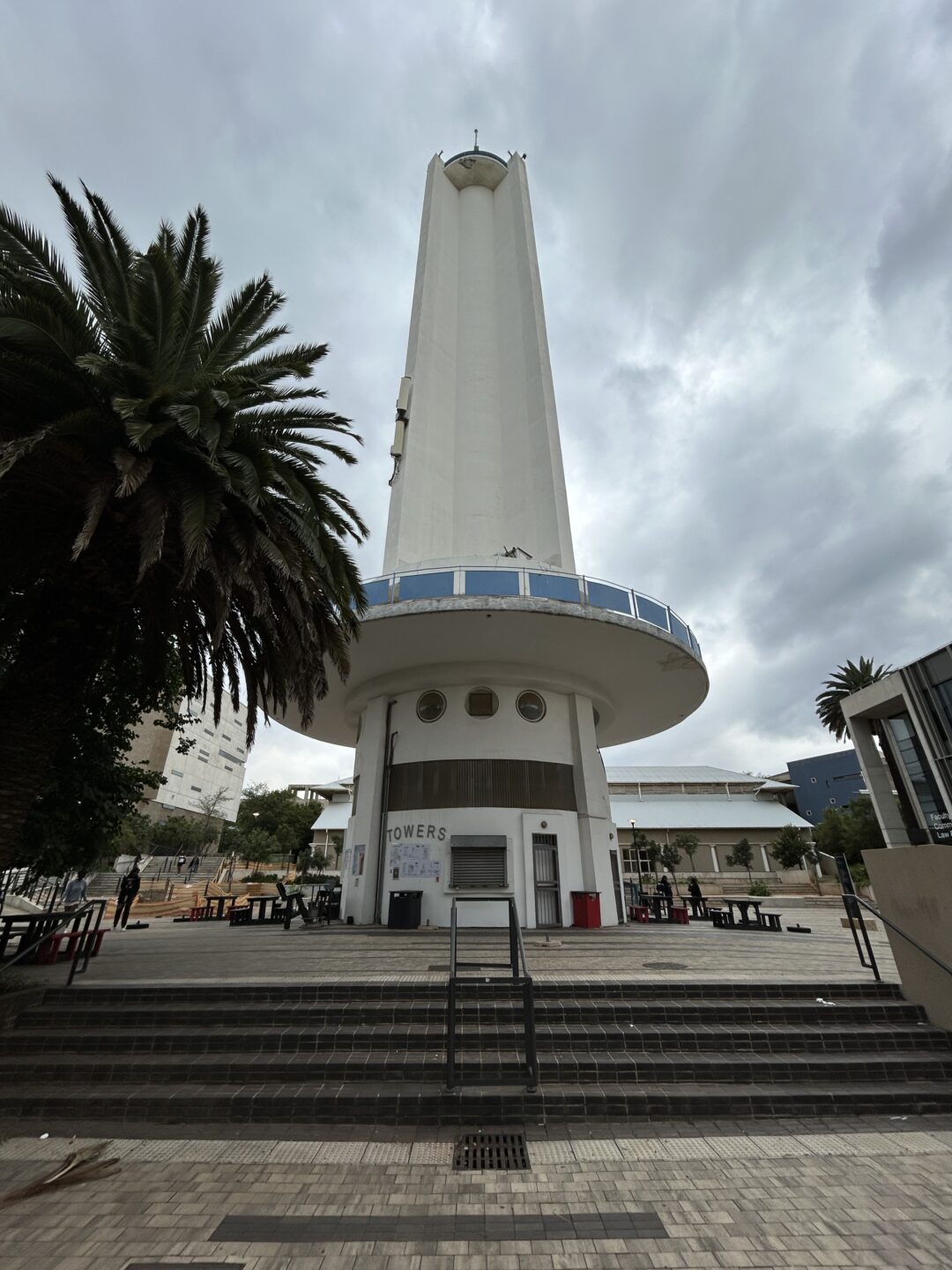 Since Wits University took over the show grounds the cable car system has been removed and the Tower of Light now accommodates a small tuck shop at ground floor, and the West campus Security offices on the upper level. Circular Perspex windows have been installed to provide light within the security office.